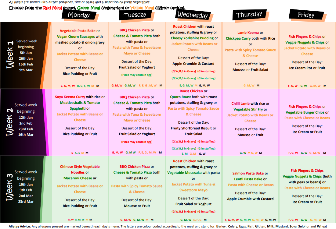 Spring Term - 2026 School Lunch Choices - Click on this to select your meal choices